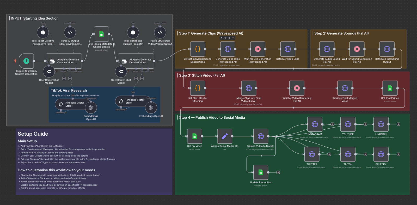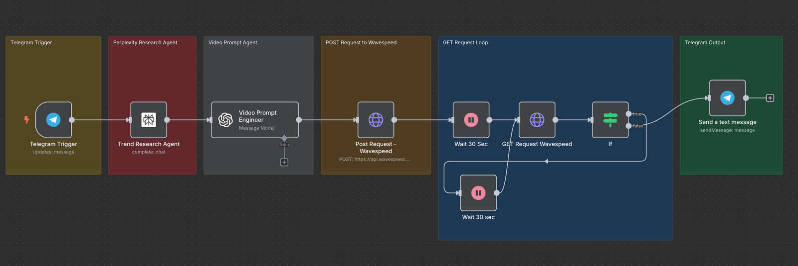 Streamlines trend identification from Telegram, transforms findings into film briefs, and distributes finished clips through Wavespeed—perfect for immediate trend-to-movie production.